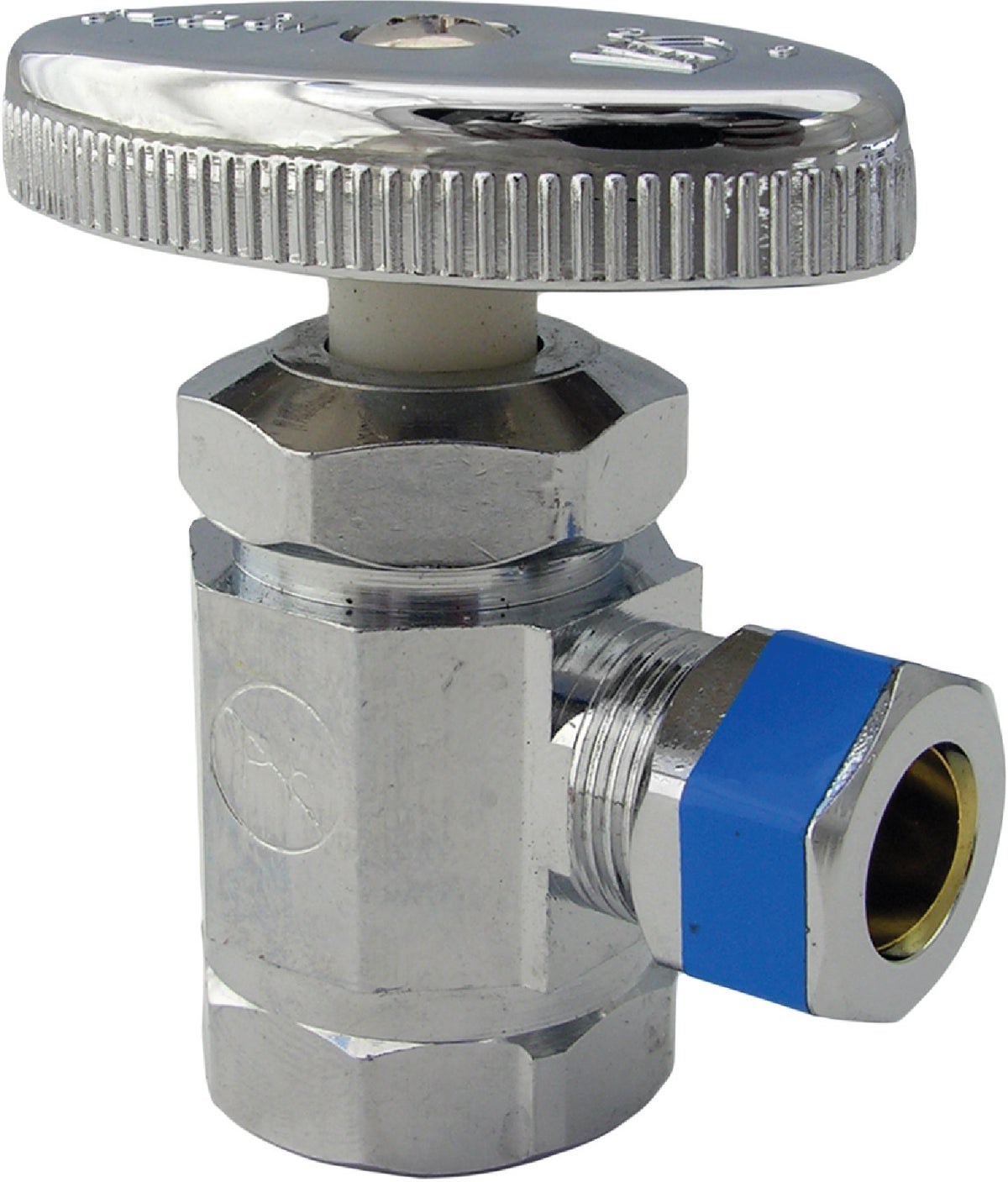 LARSEN FIP X COMPRESSION ANGLE STOP VALVEThis Larsen angle stop valve features a 1/2" female iron pipe (FIP) inlet and 1/2" OD compression outlet. The chrome plated brass body provides durability and corrosion resistance, and the multi-turn design allows precise flow control.