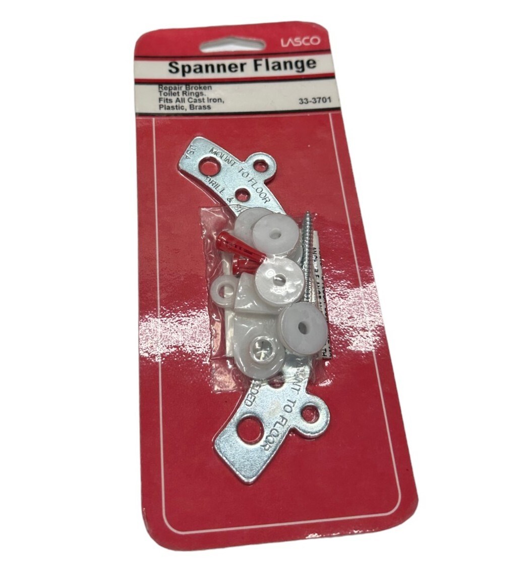 LARSEN TOILET SPANNER FLANGE REPAIR KITThis Larsen spanner flange provides a quick and economical repair for broken or damaged toilet closet flanges. The curved metal piece with slots and holes bridges damaged sections of the flange, restoring secure bolt mounting without replacing the entire flange.