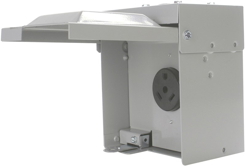 Power outlet panel designed for outdoor service to meet temporary power requirements at construction sites & recreation vehicle parks