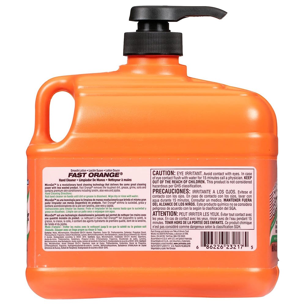 PERMATEX FAST ORANGE SMOOTH HAND CLEANER - 1/2 GALLONThe #1 selling biodegradable hand cleaner, formulated without petroleum solvents, harsh chemicals, or ammonia. Fast Orange uses natural citrus power to deep clean tough dirt while being gentle on skin. Fortified with aloe, lanolin, glycerin, and other skin conditioners to soothe raw, rough hands.