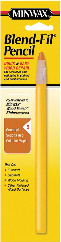 Blend-Fil® Pencils are perfect for easy touch-up and repair of scratches and nail holes in stained and finished wood. They’re a quick, no-mess way to maintain the beauty of wood. Available in a variety of colors to match specific Minwax Wood Finish™ stain colors and many other wood stains, Minwax® Blend-Fil® Pencils can also be mixed to create custom colors.