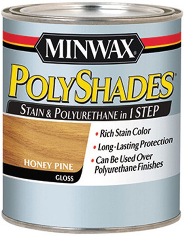 Minwax® PolyShades® combines beautiful wood stain and polyurethane in one simple step. Minwax® PolyShades® provides rich wood color and long lasting protection while enhancing the wood grain. Polyshades® will reduce finishing time compared with staining with one product and protecting with another.