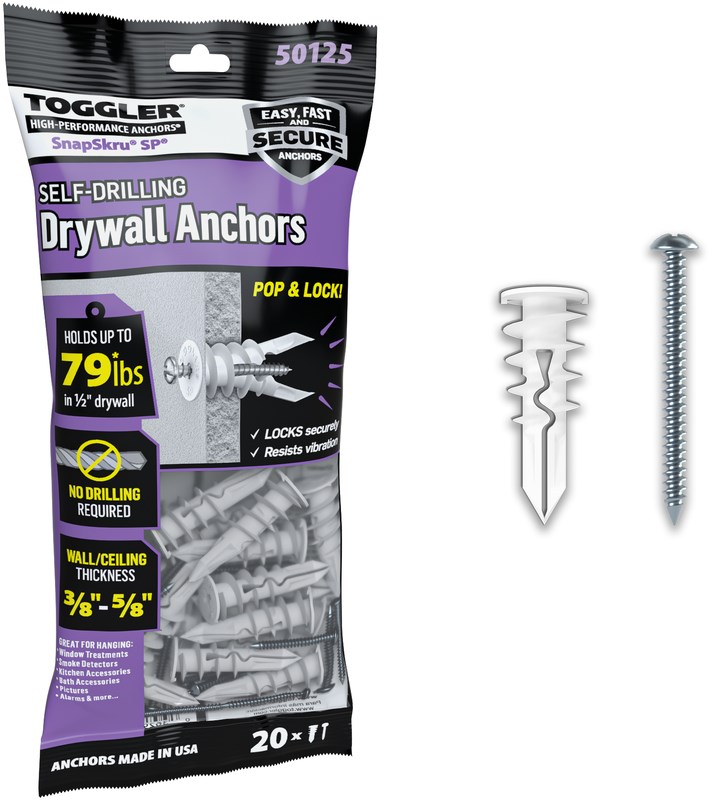 TOGGLER ALLIGATOR ALL-PURPOSE WALL ANCHOR - #8 x 1-1/2" (20 PACK)The Toggler Alligator AF8 is a versatile all-purpose anchor that works in both hollow and solid wall materials. The unique design expands to grip securely in drywall, plaster, concrete, brick, tile, and hollow block.