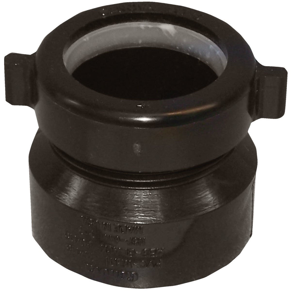 - Adapts ABS fitting hub to tubular trap at wall or floor