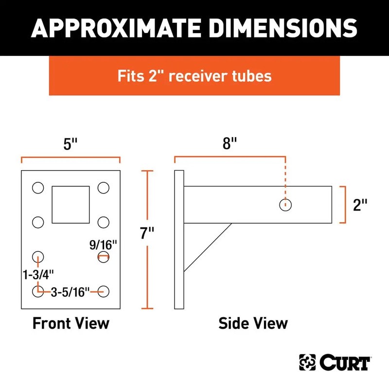 Fits trailer hitches w/ a 2"x2" receiver tube