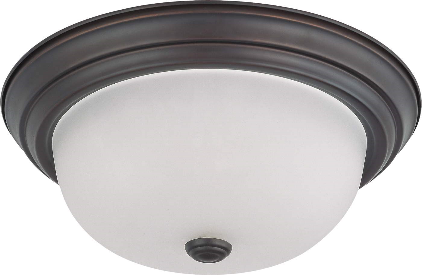 SATCO NUVO 2-LIGHT FLUSH MOUNT CEILING FIXTUREThe Satco Nuvo 2-Light flush mount ceiling fixture in Mahogany Bronze brings clean, classic style to any room. This indoor fixture features frosted white glass shade and accepts two 60W A19 bulbs with E26 medium base sockets.