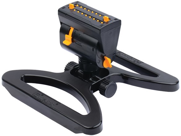 - Mini oscillating sprinkler has flo-thru base to allow for multiple unit to unit connections