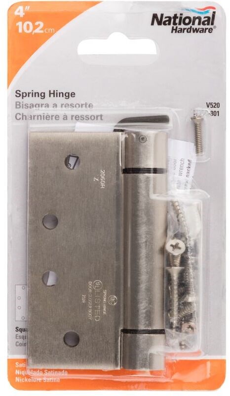Self-Closing Spring Door Hinge, Satin Nickel Finish ~ 4" x 4"