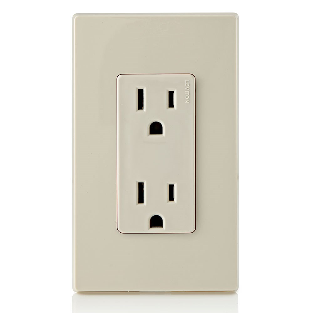 DECORA GROUNDED DUPLEX RECEPTACLELeviton S06-5325-TSThe Leviton Decora 15A Light Almond outlet is crafted from high-quality thermoplastic for durability and aesthetic appeal. It features effortless installation options, reliable conductivity, and compatibility with standard plugs and devices.