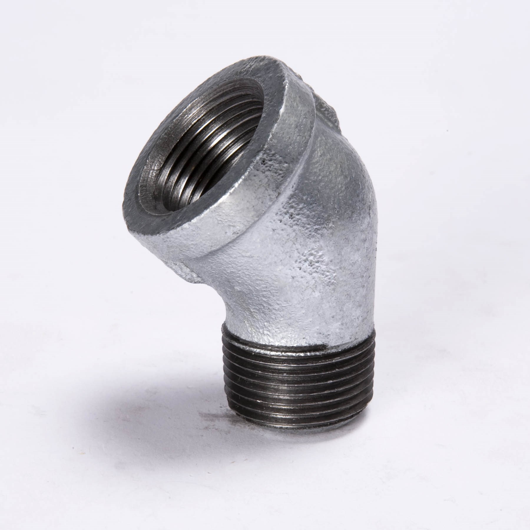 ANVIL GALVANIZED MALLEABLE IRON 45-DEGREE STREET ELBOW - 2"This 2-inch galvanized malleable iron 45-degree street elbow from Anvil/Mueller provides reliable pipe direction changes in plumbing and gas line applications. The street elbow design features one male and one female NPT threaded end for connecting pipes at a 45-degree angle without requiring additional fittings.