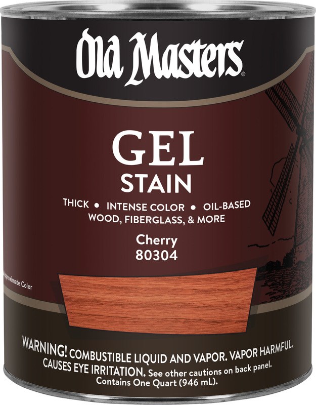 OLD MASTERS GEL STAIN - CHERRYOld Masters Gel Stain in Cherry is an oil-based gel stain formulated for use on wood, fiberglass, metal, and composition surfaces. The thick gel formula prevents drips and runs, making it ideal for vertical surfaces and hard-to-stain woods like pine, birch, maple, poplar, and cherry. Cherry produces a warm, reddish-brown tone that replicates the look of natural cherry wood.