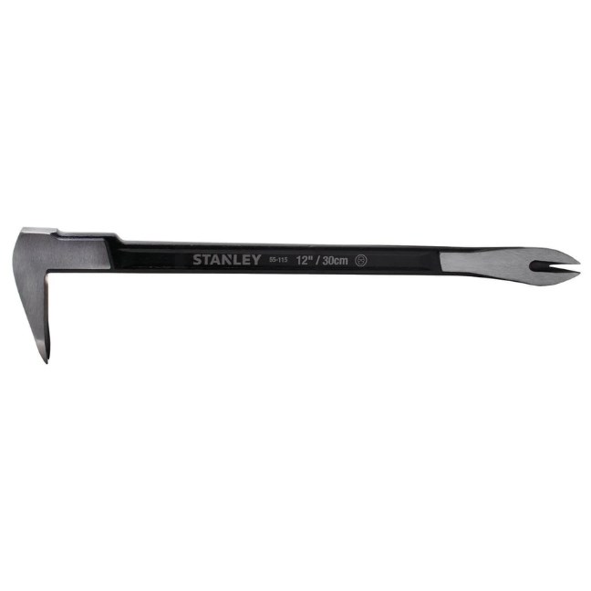 STANLEY PRECISION CLAW BAR - 12"The Stanley Precision Claw Bar is a professional-grade nail puller and pry bar forged from high-carbon alloy steel. The polished, beveled claws provide precise nail pulling, while the flat striking face allows the claw to be driven under deeply embedded nails.