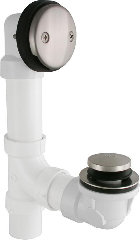 LDR WASTE AND OVERFLOW KITThis LDR bathtub waste and overflow kit features a convenient touch-toe drain stopper that opens and closes with a simple push of your toe. The brushed nickel finish adds a modern touch to your bathroom while the Schedule 40 PVC construction ensures reliable drainage.