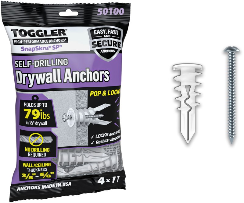 TOGGLER ALLIGATOR ALL-PURPOSE WALL ANCHOR - #8 x 1-1/2" (4 PACK)The Toggler Alligator AF8 is a versatile all-purpose anchor that works in both hollow and solid wall materials. The unique design expands to grip securely in drywall, plaster, concrete, brick, tile, and hollow block.