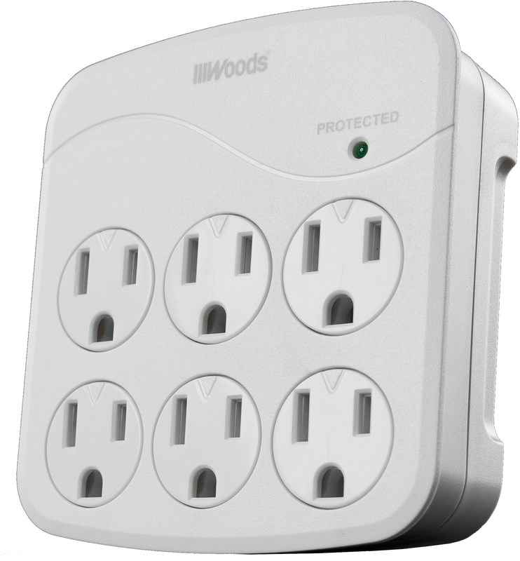 Power surge protector that provides 1440J of protection: the Woods outlet surge protector protects your electrical devices from damage due to a sudden power spike by limiting the amount of current.