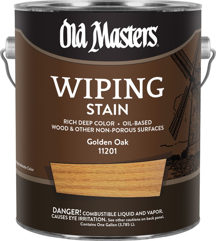 Old MastersĀ® Wiping Stain is a robust, oil-based masking stain for use on wood, fiberglass, metal and composition surfaces. This stain can also be used in wood graining or as an antiquing glaze over painted surfaces. Its thick, rich formula allows easy application and superior color control, necessary to achieve rich, uniform color on most surfaces in a single application. For interior use and suitable for exterior use when top coated with a protective clear finish.