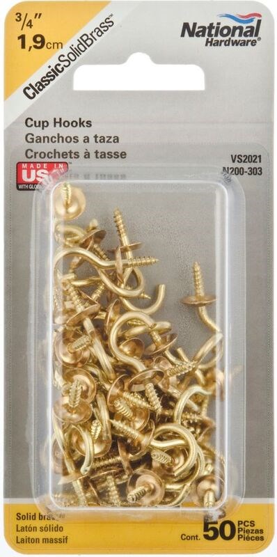 Solid Brass Cup Hooks, 3/4" ~ Pack of 50