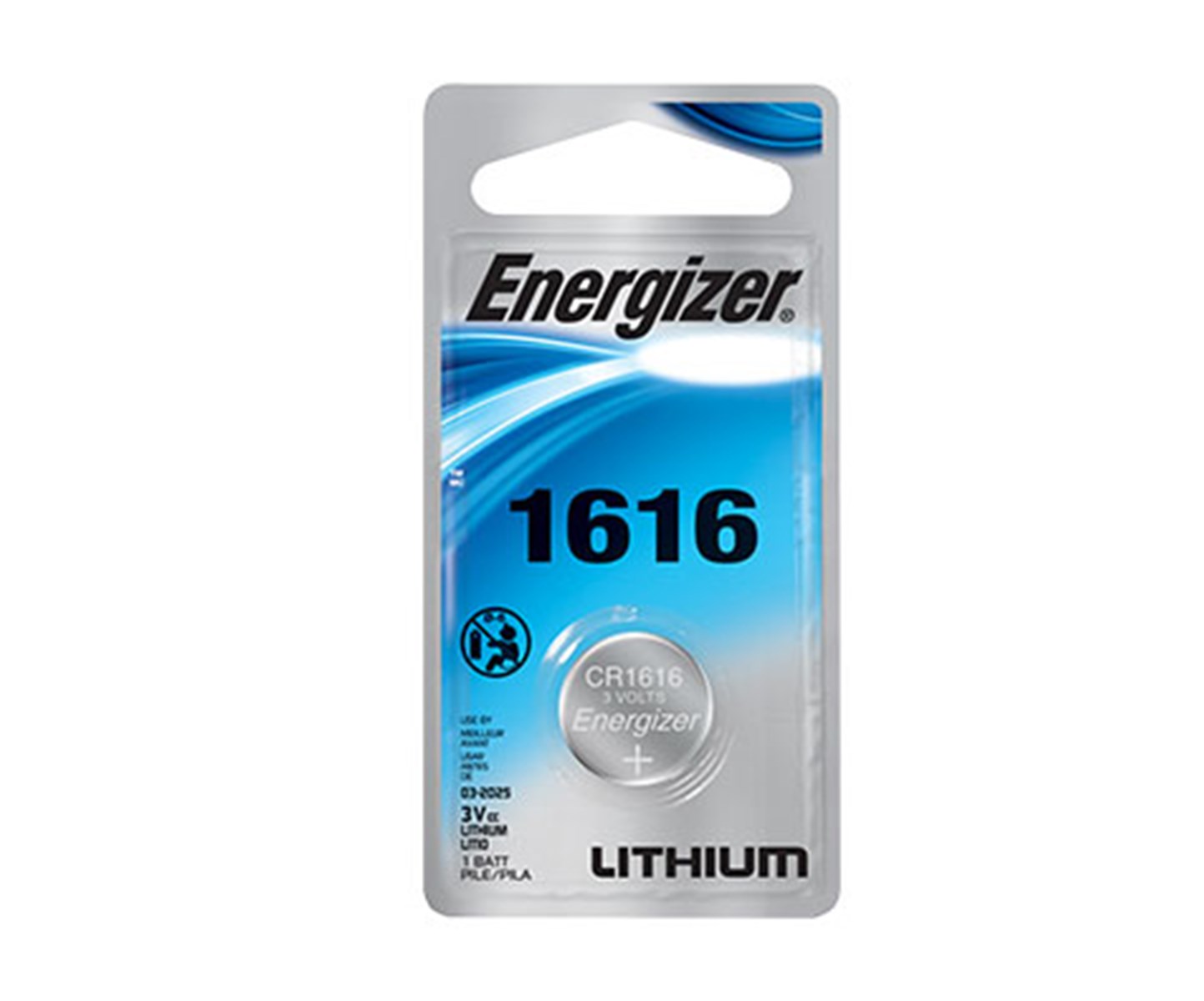 ENERGIZER LITHIUM COIN BATTERY - CR1616, 3VPower watches, keyless entry systems and small electronics with the Energizer CR1616 Lithium Coin Battery. This 3-volt battery delivers reliable, long-lasting performance in a compact 16mm coin cell format.