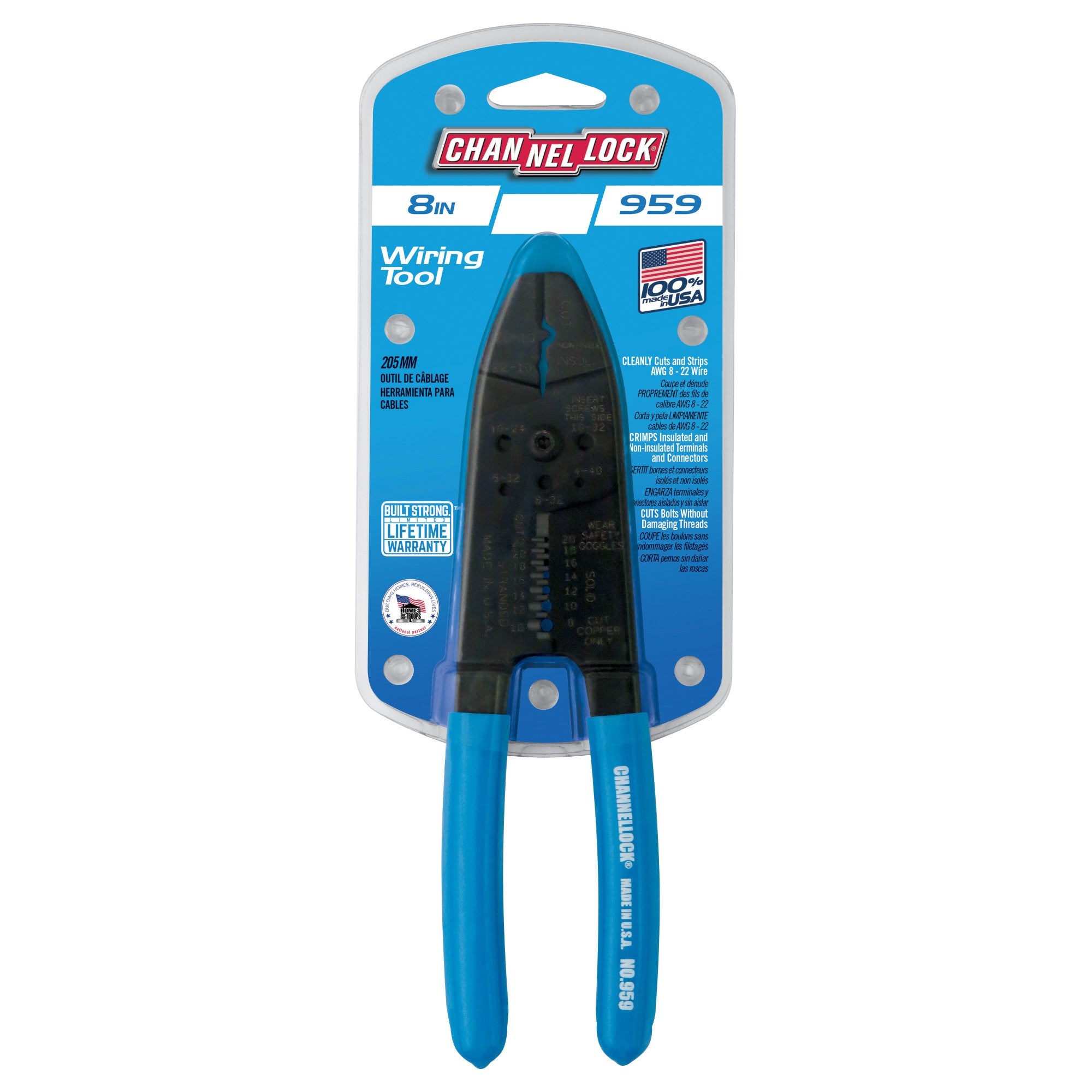 CHANNELLOCK WIRE STRIPPER/CUTTER PLIERS - 8-1/4"These Channellock wire stripper/cutter pliers feature a lean nose design for pulling and looping wire ends, with precision ground cutters for clean cuts. Laser-etched wire gauge markings provide lasting identification, and the CHANNELLOCK BLUE comfort grips ensure a secure hold during extended use.