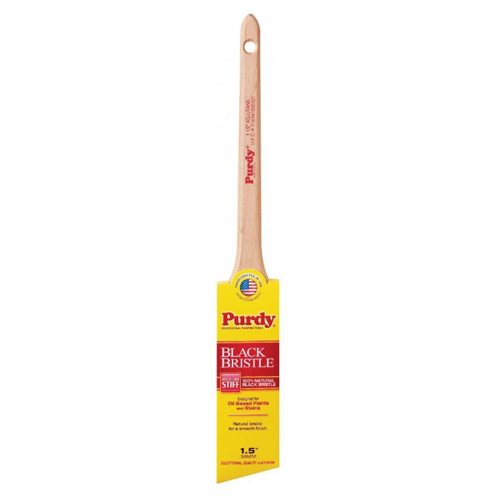 PURDY ADJUTANT BLACK BRISTLE ANGLE SASH BRUSH - 1-1/2"Professional-quality angled sash brush from Purdy featuring 100% natural black China bristle for oil-based paints and stains. The rattail hardwood handle provides precise control for cutting in and detail work, while the stainless steel ferrule ensures long-lasting durability.