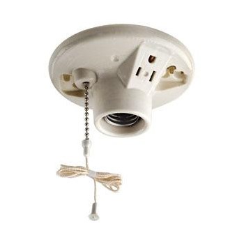 Lampholder W/ Side Outlet, Pull Chain  ~ 15 Amp, White