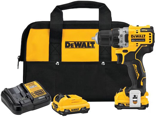 - Kit includes: drill/driver, (2) 12V MAX 2.0Ah batteries, charger, belt clip, and tool bag