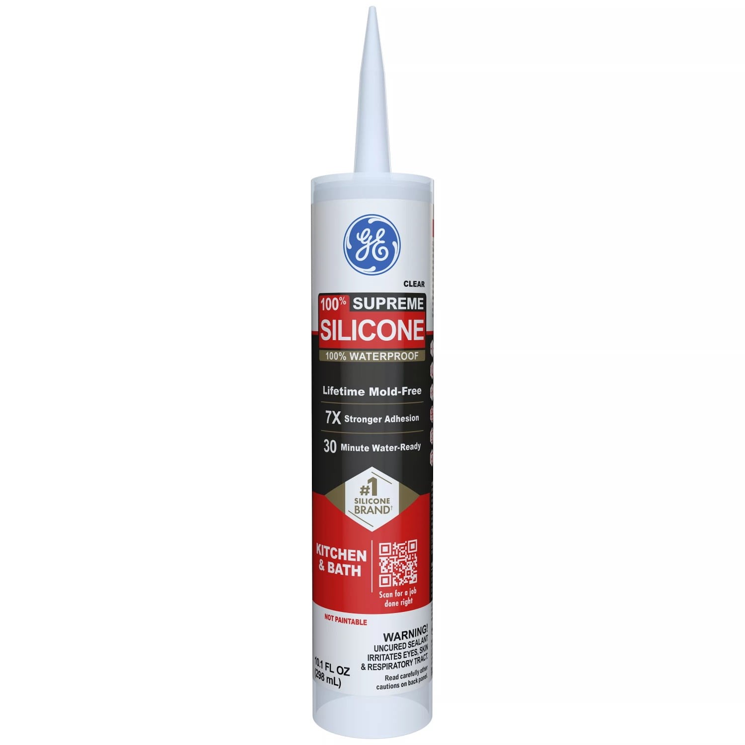 GE KITCHEN & BATH SUPREME SILICONE SEALANTGE Kitchen & Bath Supreme Silicone provides a 100% waterproof, permanently flexible seal for tubs, showers, sinks, and countertops. The low-odor formula is resistant to stain-causing mold and mildew, protecting your surfaces from water damage over the long term. Strong adhesion bonds to most common bathroom and kitchen surfaces.