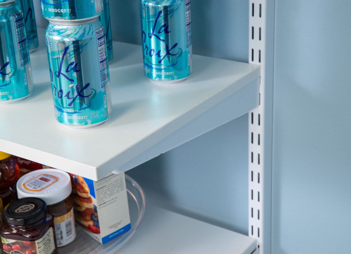 ORGANIZED LIVING FREEDOMRAIL WOOD SHELF BRACKET - 12-1/2"Support wood shelving with this 12-1/2" FreedomRail solid shelving bracket from Organized Living. Double-wall construction delivers reliable strength for heavy-duty storage applications. Four clips mount securely into FreedomRail uprights for easy, tool-free adjustability. This size accepts the FreedomRail rod clip for added versatility.