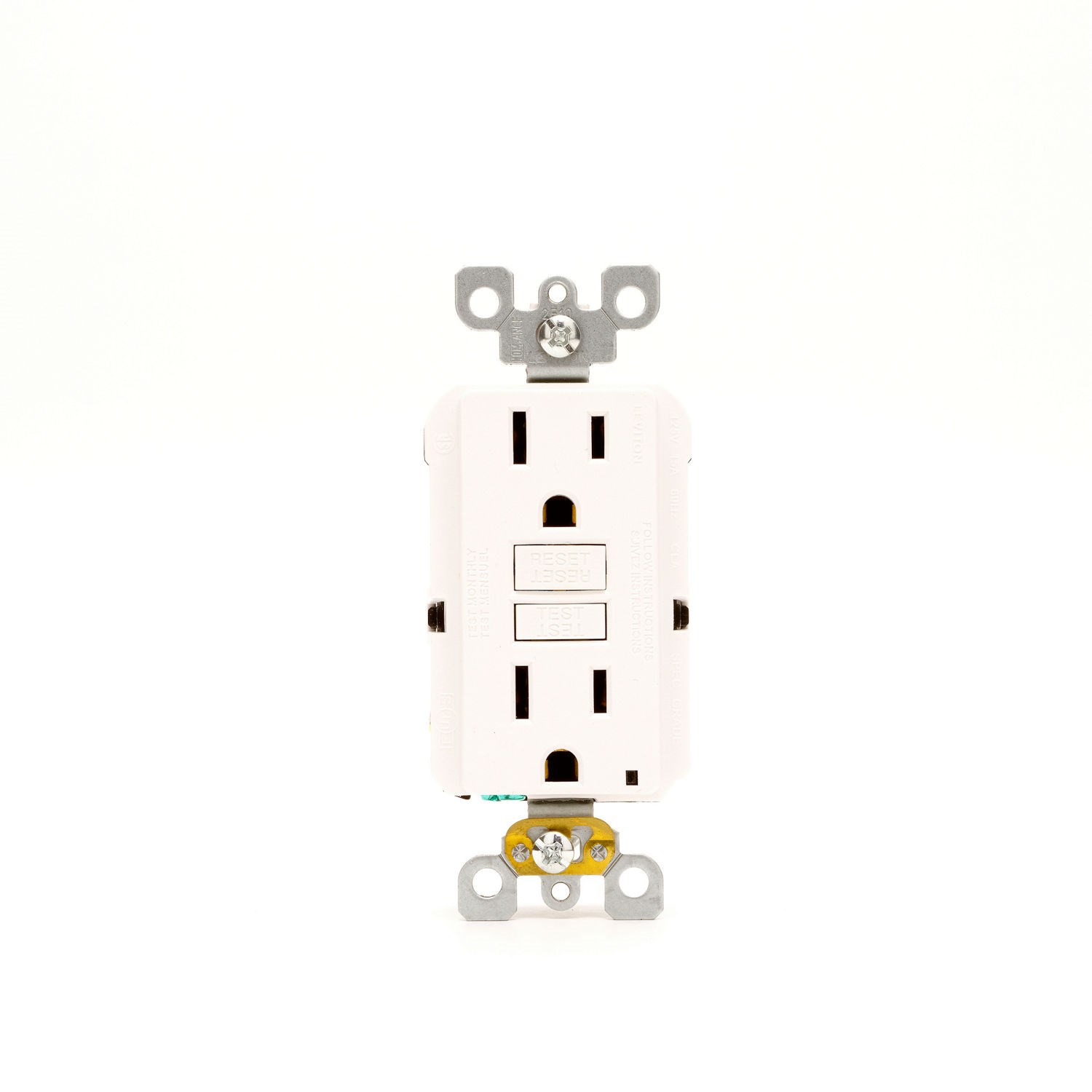 SMARTLOCK PRO SELF TEST GFCI RECEPTACLELeviton R72-GFNT2-0RWOngoing peace of mind, guaranteed. The SmartlockPro Self-Test GFCI automatically self-tests, eliminating forgetfulness concerns. Designed to meet the latest UL standard for auto-monitoring, our self-test GFCI line periodically performs internal tests to confirm ground fault responsiveness. With the market's slimmest profile, installation is fast and effortless, while Leviton's patented reset lockout mechanism prevents incorrect reset. The SmartlockPro Self-Test GFCI is the premier choice for ground fault circuit interrupter protection.