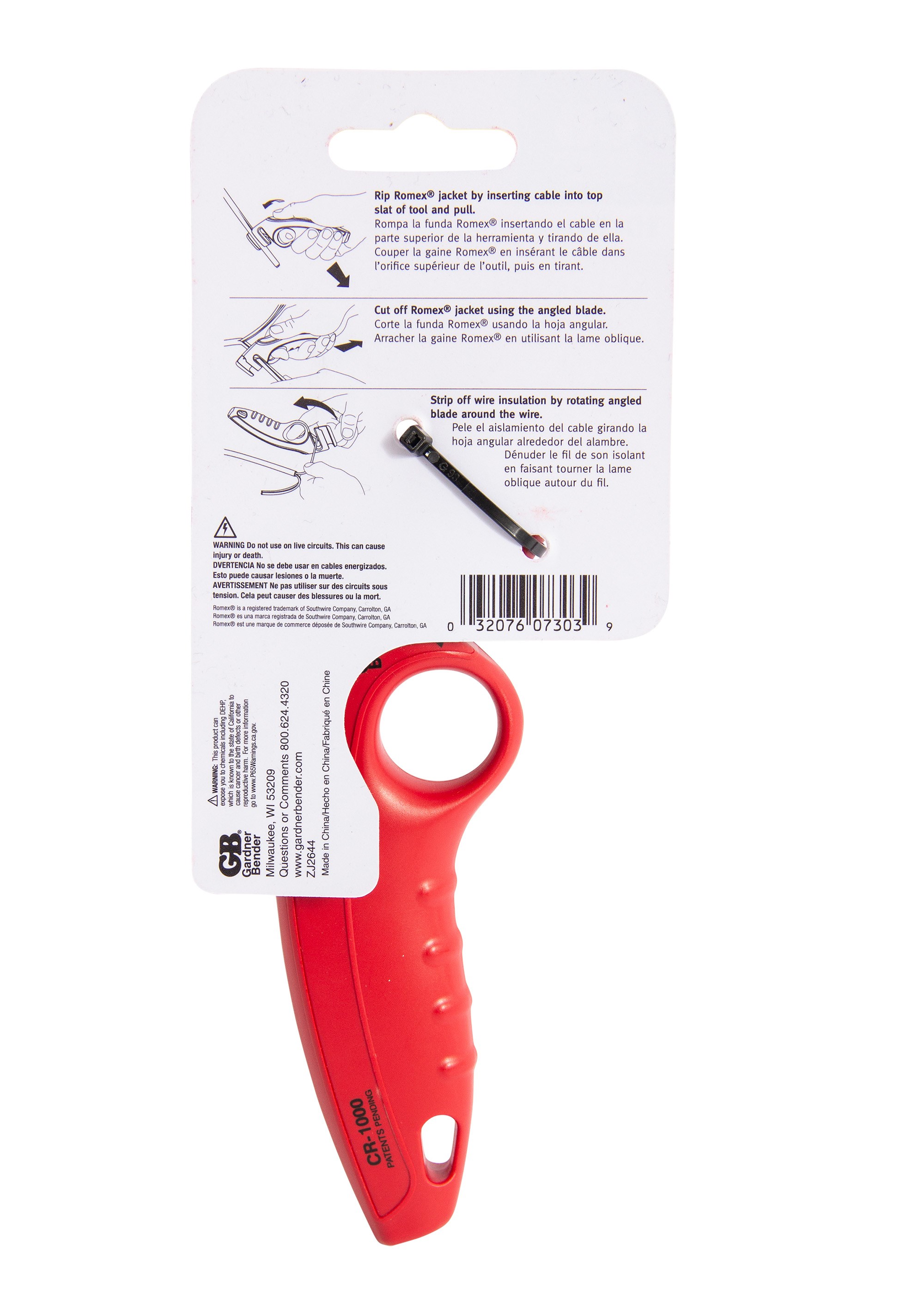 GARDNER BENDER NM CABLE RIPPERQuickly and cleanly rip open the outer jacket of non-metallic (NM/Romex) sheathed cable with this compact Gardner Bender cable ripper. The nickel-plated body resists corrosion, and wire gauge markings etched into the handle provide a quick reference for stripping #6 through #14 AWG wire.