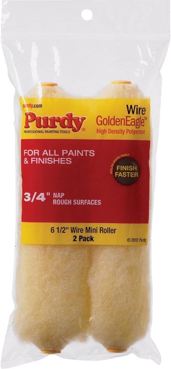 PURDY GOLDEN EAGLE MINI ROLLER COVER - 3/4" NAP, 2-PACKThe Purdy Golden Eagle mini roller cover delivers smooth, even coverage with all latex and oil-based paints and stains. The high-density knitted polyester fabric provides excellent pickup and release, with the thicker 3/4" nap ideal for semi-rough to rough surfaces like textured walls and stucco.