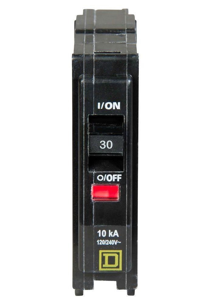 SQUARE D QO SINGLE POLE CIRCUIT BREAKER - 30 AMPThe Square D QO 30-amp single pole circuit breaker features the exclusive VISI-Trip indicator that snaps the handle to a midpoint position and reveals a red flag when tripped, making it easy to identify in a loaded panel.