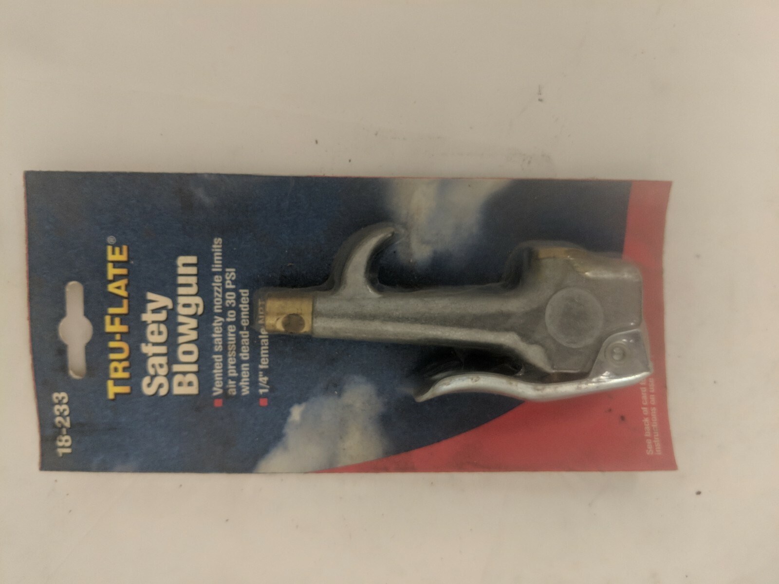 PLEWS SAFETY BLOW GUN - LEVER TYPEThe Plews 18-233 lever-type safety blow gun provides controlled bursts of compressed air for cleaning and drying parts, equipment, and workspaces. The safety design meets Federal standards and OSHA noise level requirements for reliable, compliant operation in shop and industrial settings.