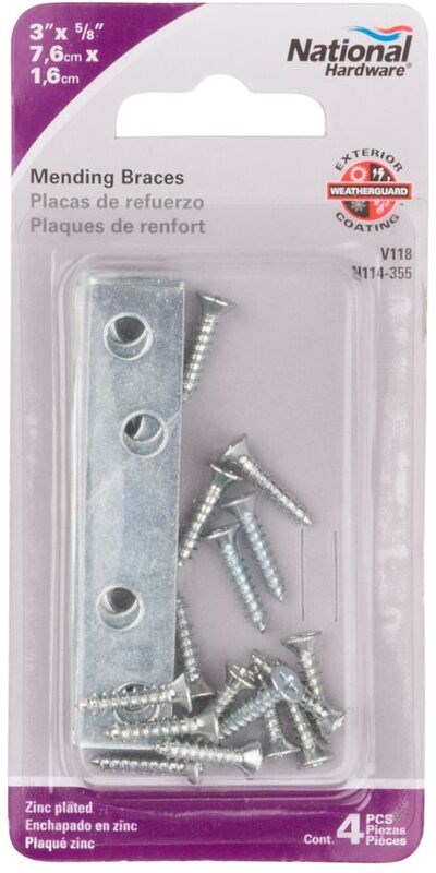 Zinc Mending Brace, Visual Pack 118 3 x 5/8 inches