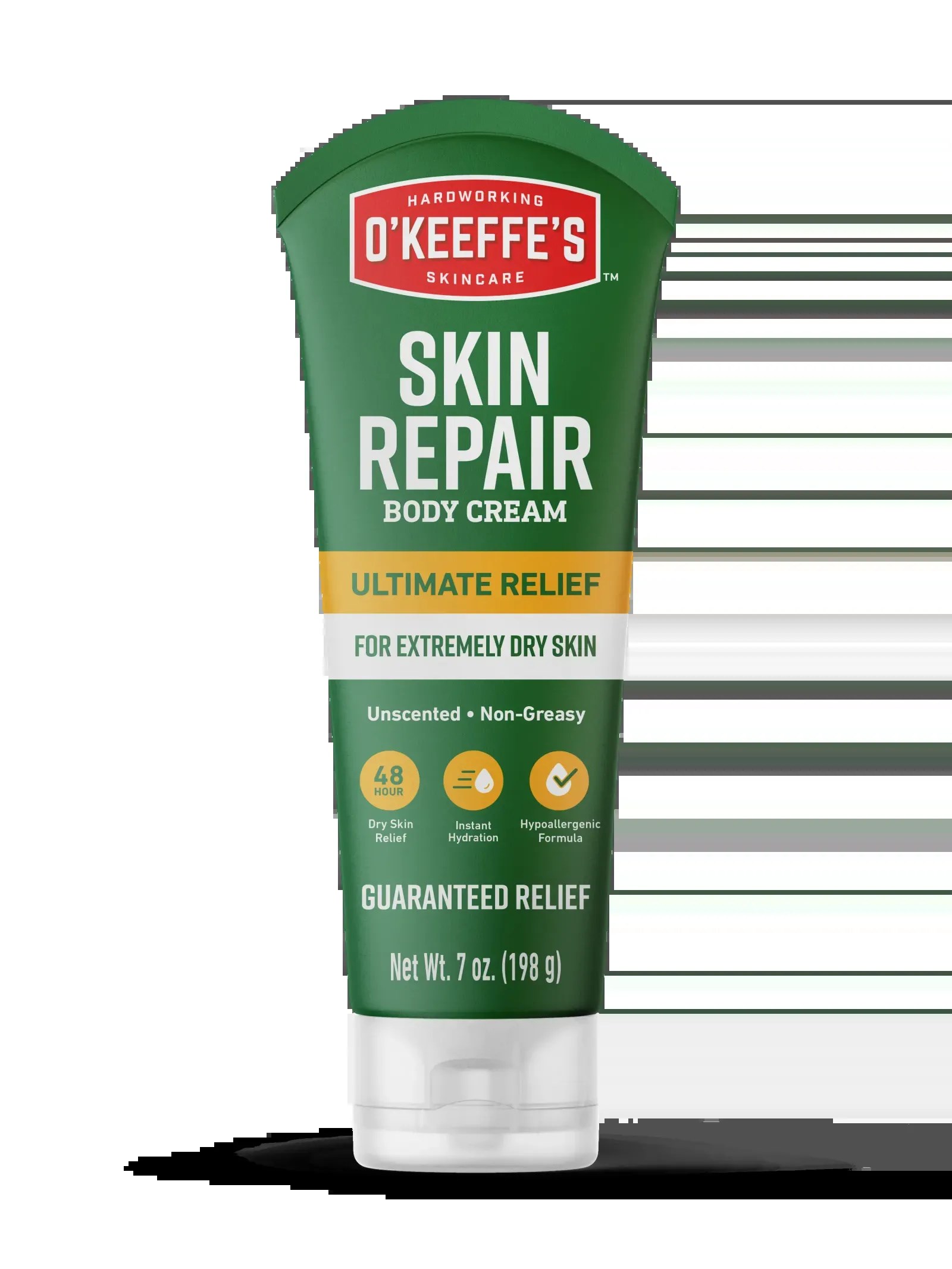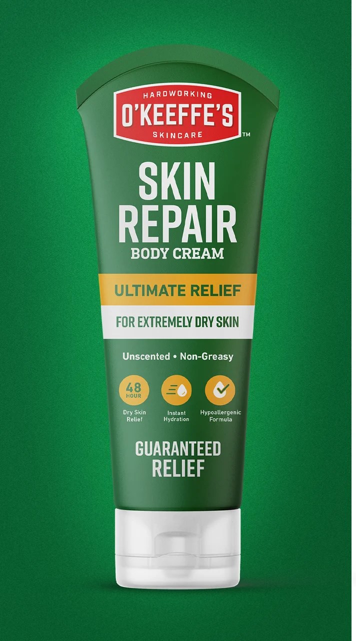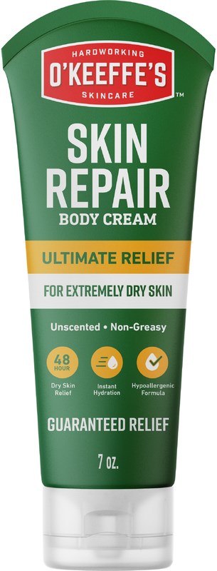 O'KEEFFE'S SKIN REPAIR CREAMO'Keeffe's Skin Repair Cream is a 3-in-1 formula that moisturizes, relieves, and restores even the most severely dry skin. The glycerin-rich, non-greasy formula provides 48-hour hydration by creating a protective barrier that locks in moisture. Unscented and hypoallergenic, it is dermatologist approved for daily use on sensitive skin.