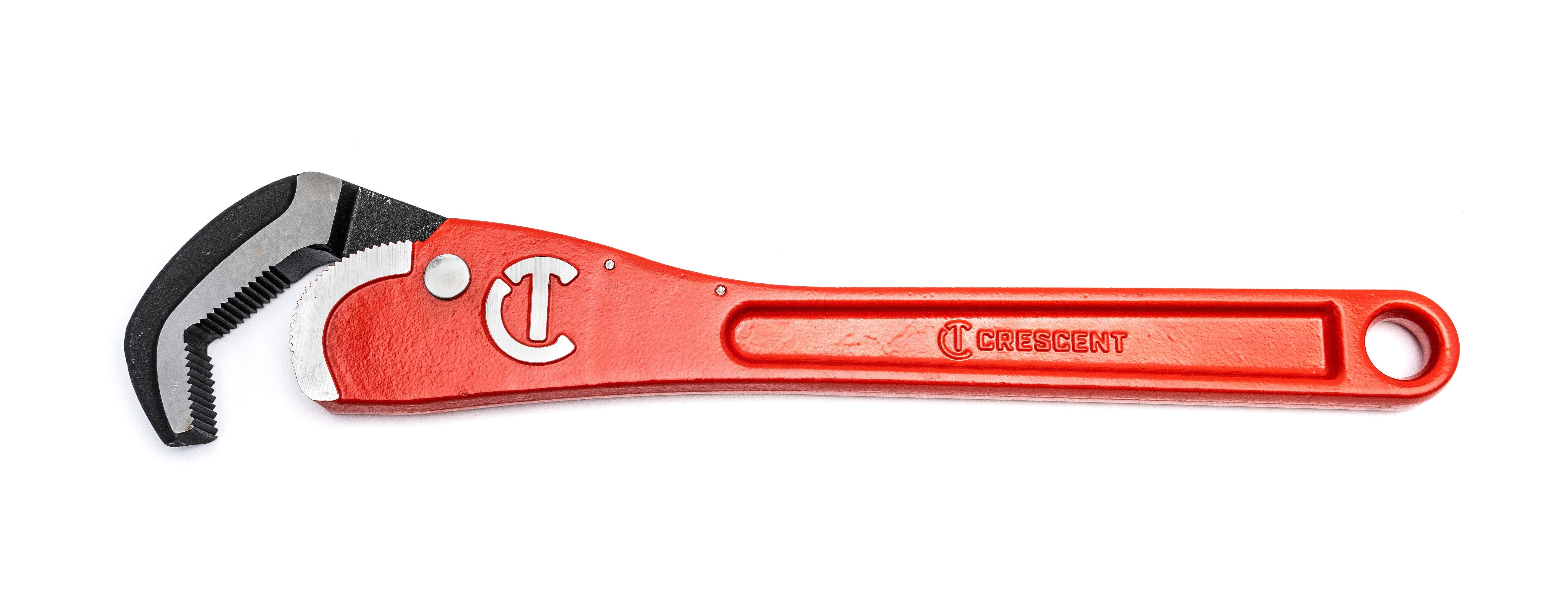 CRESCENT 16" SELF-ADJUSTING STEEL PIPE WRENCHBuilt for plumbing professionals and serious DIYers, this 16" Crescent pipe wrench features a self-adjusting head that instantly grips and releases pipes with a ratcheting action. The spring-loaded jaw enables one-handed operation, and the extended jaw reaches into tight spaces.
