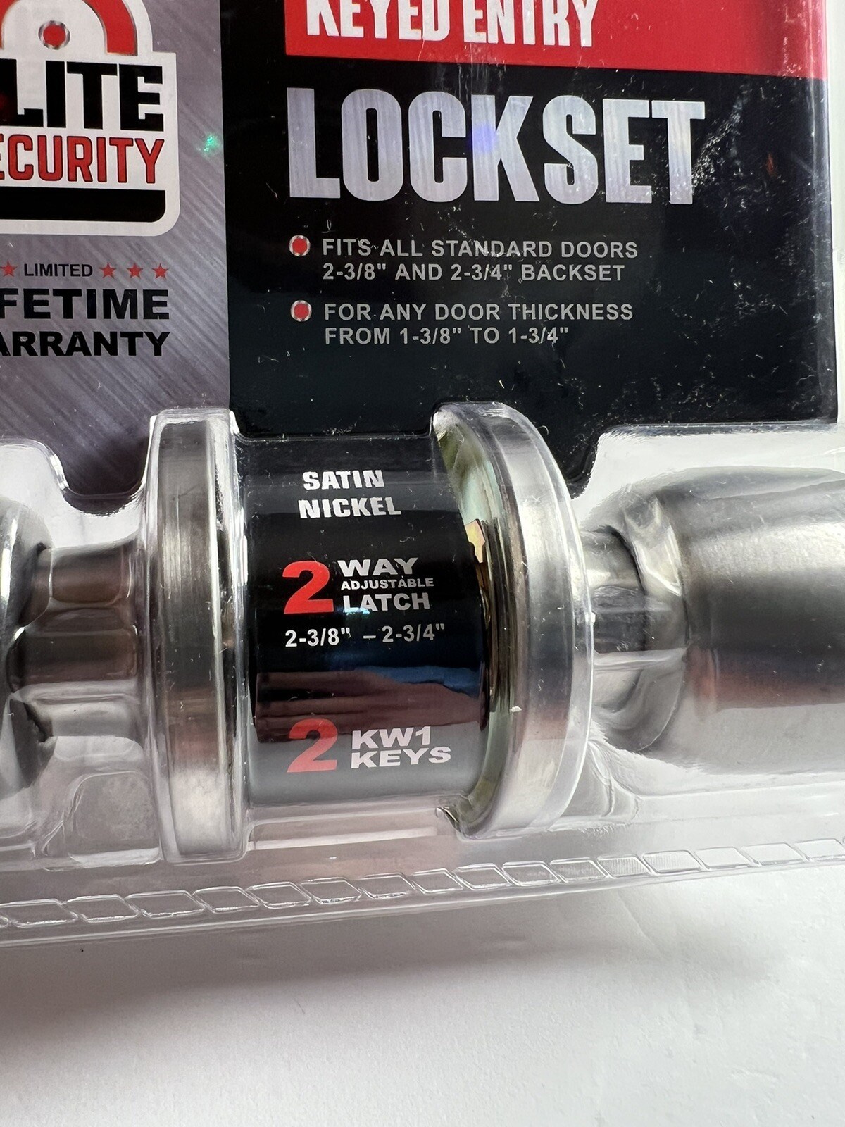 ELITE SECURITY KEYED ENTRY BALL KNOB - SATIN NICKELSecure your home with this ANSI Grade 3 keyed entry ball knob lockset in a satin nickel finish. Features a 5-pin KW1 cylinder and includes 2 keys. The adjustable latch fits standard doors for quick, easy installation.