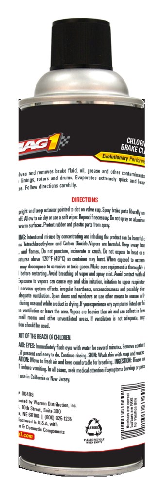 MAG1 PREMIUM BRAKE PARTS CLEANERMAG 1 Premium Brake Parts Cleaner quickly removes brake fluid, grease, oil, and other contaminants from brake linings, drums, and related parts. The high powered spray degreases instantly and dries quickly for fast, thorough cleaning without disassembling the brake unit.