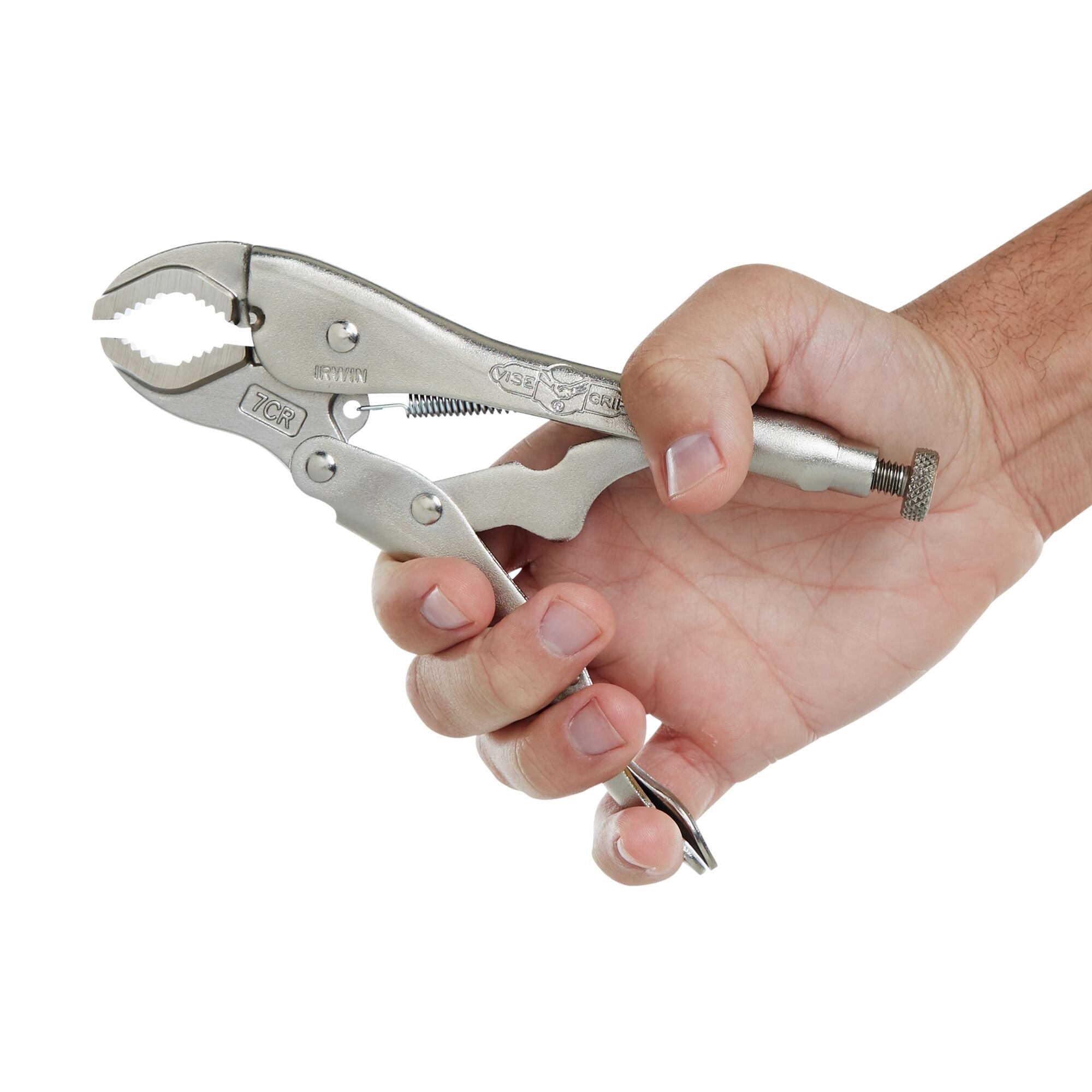 IRWIN VISE-GRIP CURVED JAW LOCKING PLIERS - 7"The original Irwin Vise-Grip 7" curved jaw locking pliers deliver powerful, hands-free clamping in a compact size. The self-energizing lower jaw automatically increases grip pressure as you apply torque, providing 3X more gripping power than standard pliers. Ideal for tighter spaces where a full-size tool won't fit.