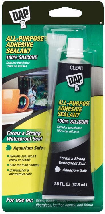 Long-lasting 100% silicone rubber sealant provides a strong waterproof seal that won't crack or shrink. Ideal for quick household repairs and projects, as well as building and repairing aquariums. Harmless to fresh and saltwater fish. Safe for food contact. Dishwasher and microwave safe.