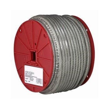 This Apex Tool Galvanized Cable comes on a convenient 250' roll. It is designed to resist abrasion and weathering. The high-strength vinyl- coated cable has a galvanized finish. It is made with a group of 7x7 wires and has a working load limit of 184 lbs. The 250' CTD cable has a diameter 3/32".