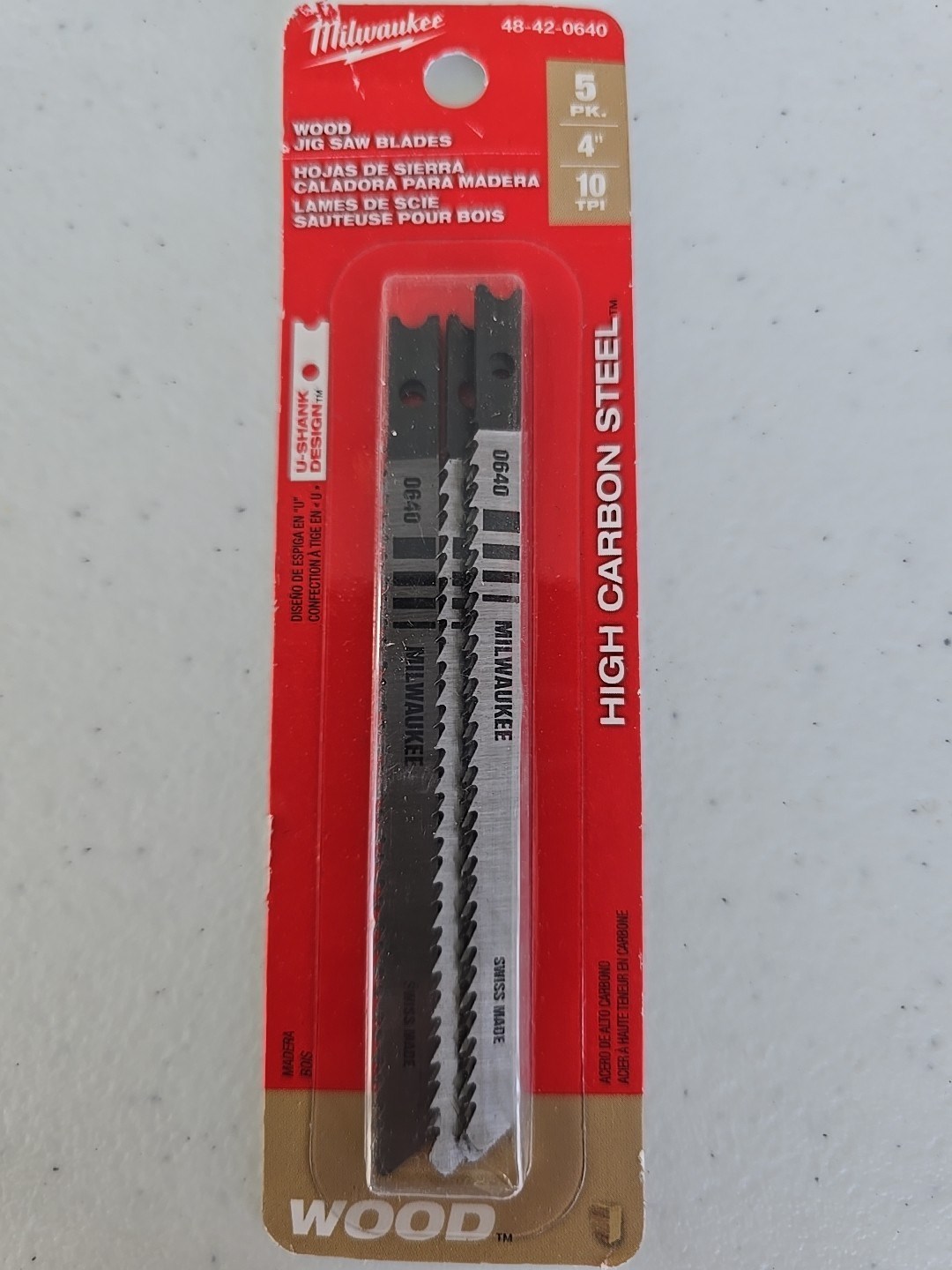 MILWAUKEE U-SHANK HIGH CARBON STEEL JIGSAW BLADEDesigned for heavy-duty professional use, these Milwaukee high carbon steel jigsaw blades deliver reliable, straight cutting in wood. The advanced construction and sharp tooth geometry provide clean, smooth cuts with a long service life. The U-shank universal tang fits most popular jigsaw brands for broad compatibility.