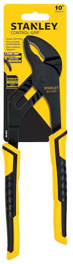STANLEY 10 IN GROOVE JOINT PLIERSVersatile tongue-and-groove pliers for grasping and turning. Features adjustable-width jaw design and rust-resistant chrome finish for durability and easy cleaning.
