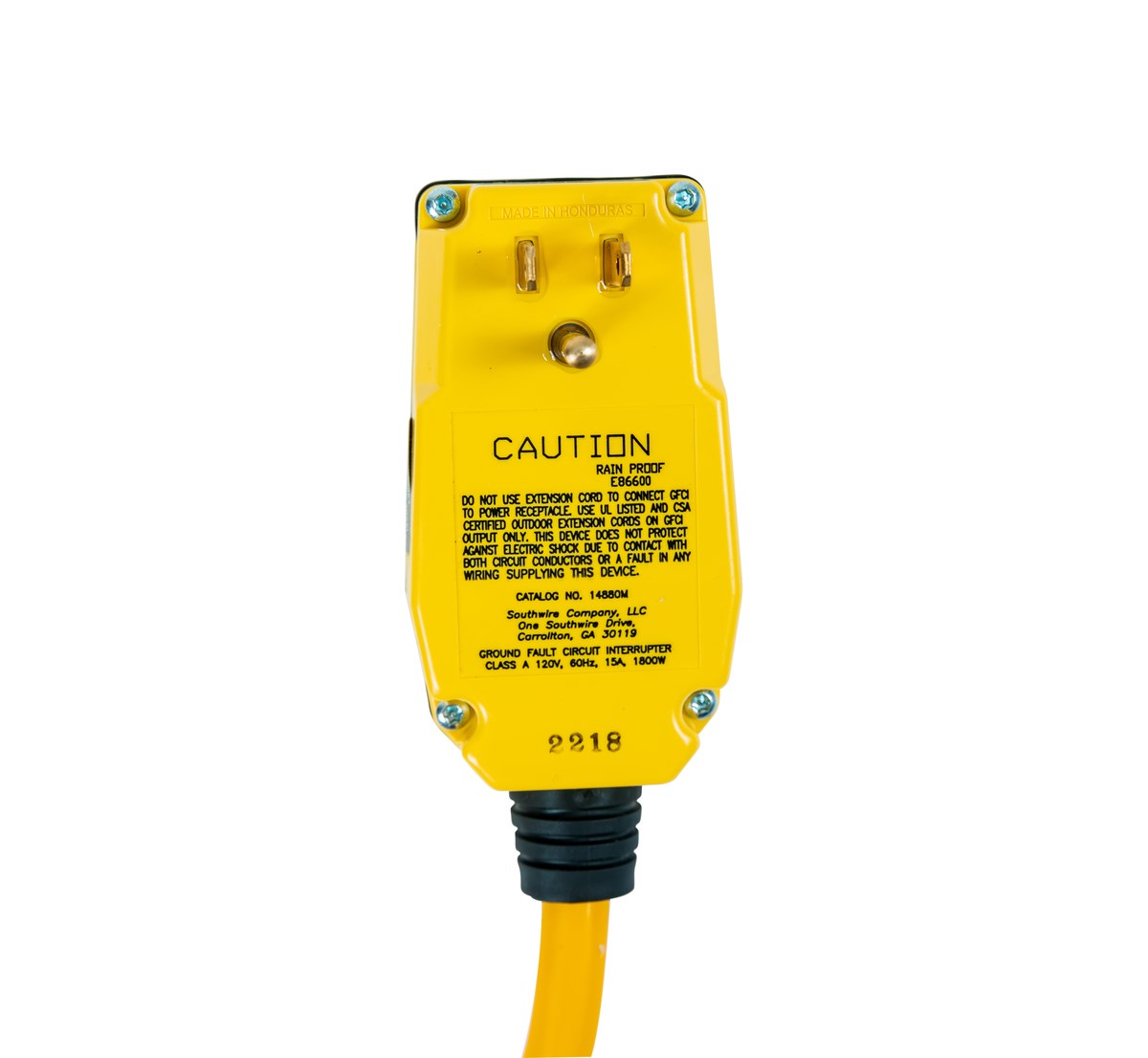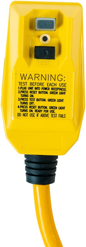 Tip: Test the GFCI before each use by pressing TEST and then RESET; replace the cord if the GFCI fails to trip.