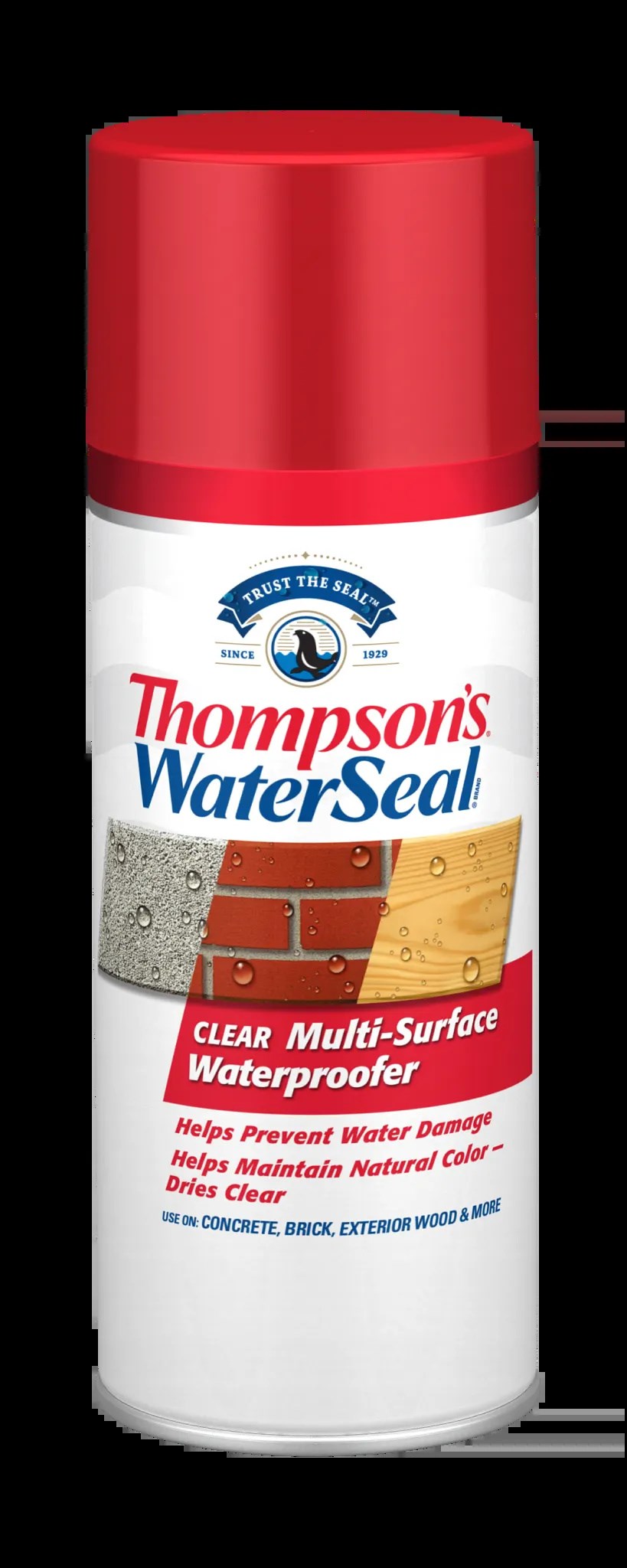 THOMPSON'S WATERSEAL MULTI-SURFACE WATERPROOFERThompson's WaterSeal Multi-Surface Waterproofer provides effective protection for wood, brick, and concrete surfaces. This clear spray formula dries invisible, allowing the natural beauty of your surfaces to show through while keeping moisture out.