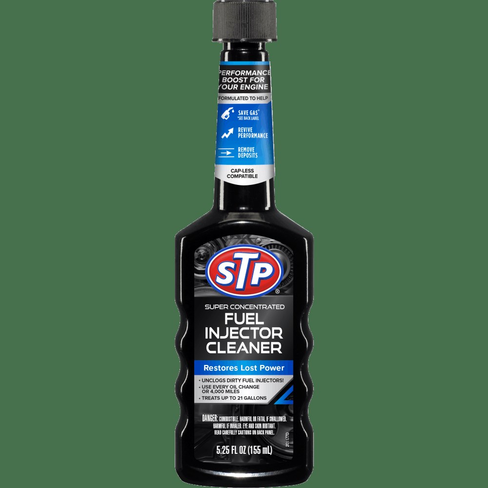 STP FUEL INJECTOR CLEANER - 5.25 OZKeep your fuel injectors clean and your engine running smoothly with STP Super Concentrated Fuel Injector Cleaner. The concentrated detergent formula dissolves and removes harmful carbon, gum, and varnish deposits that build up on fuel injectors over time, helping restore lost performance.