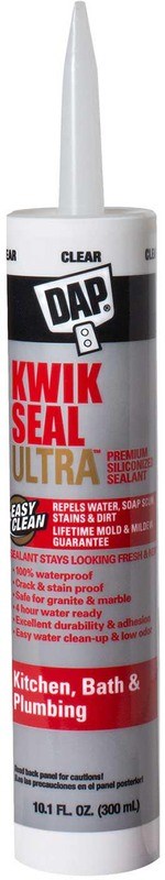 DAP® KWIK SEAL ULTRA™ is a high performance, premium siliconized kitchen and bath sealant that repels water, stains and dirt so the sealant stays looking clean, fresh and new. It has stain proof protection and is guaranteed to stay mold and mildew free for the life of the sealant.