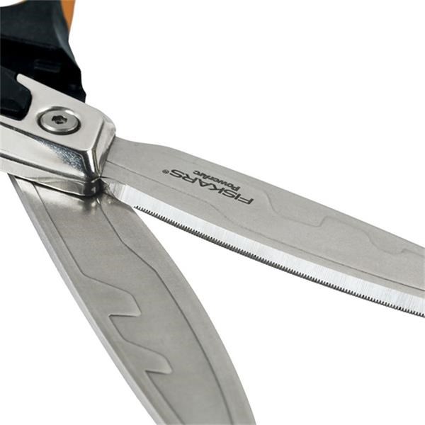 FISKARS PRO POWERARC HEAVY DUTY SHEARS 8"Cut through tough materials with ease using these 8-inch Fiskars Pro PowerArc shears. The intelligently curved blades alter the cutting angle to deliver over 30% more power through the toughest part of the cut, reducing hand fatigue on demanding jobs.