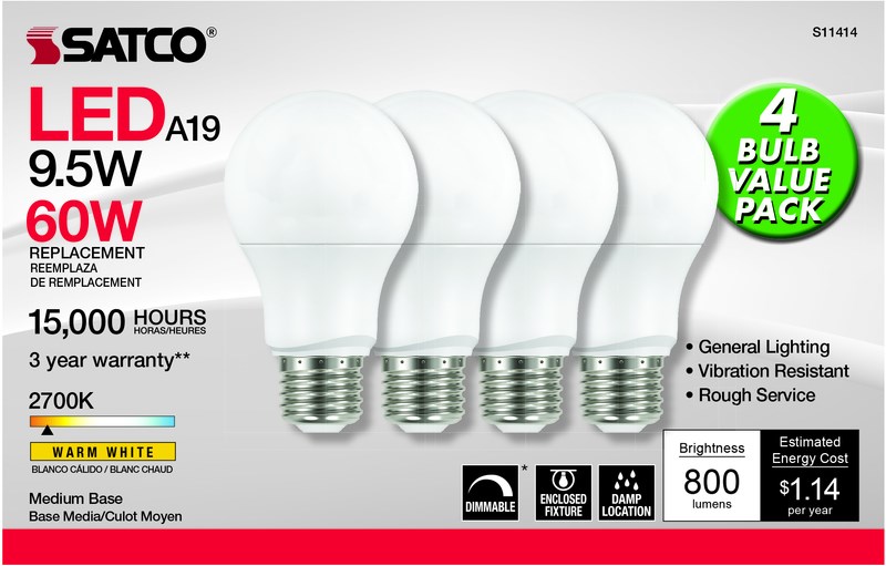 LED 4 Pack 9.5W Dim Bulb