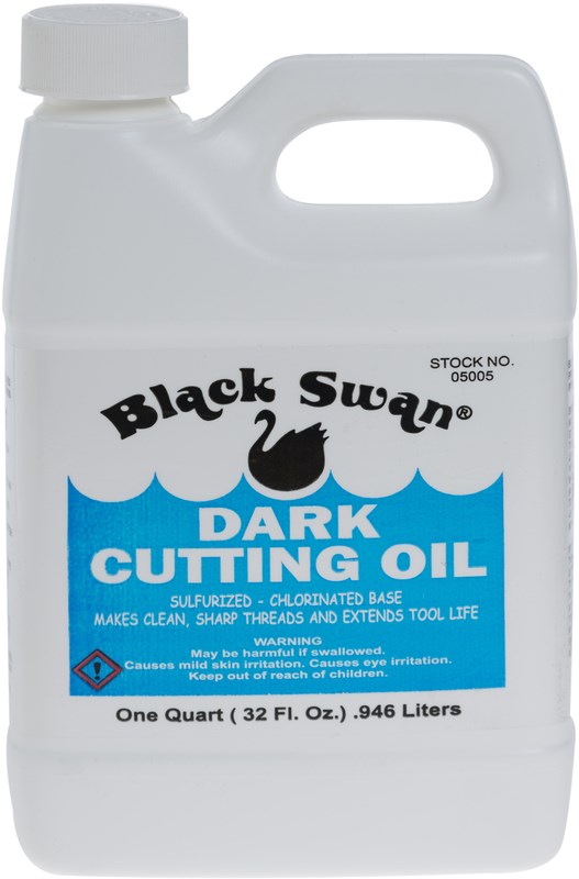 Black Swan Dark Cutting Oil is a heavy duty sulfurized-chlorinated base oil that helps cut clean, sharp threads on steel and brass pipe. It is formulated to reduce friction during the machining process. By reducing this friction heat generation is minimized. The results are cleaner, sharper threads, better fitting joints and longer tool life.